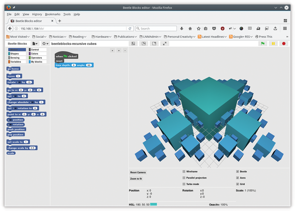 Figure 4: You can run Beetle Blocks from a server so several people can make their own 3D designs at the same time.