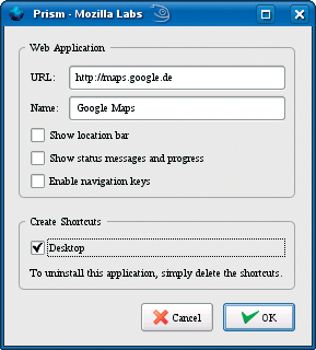 Enter Prism [1], which lets the web application escape the browser interface and displays it as a separate instance, like a local application in a normal window. This lets users launch applications at any time via desktop shortcuts.