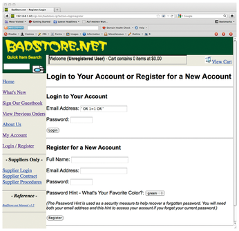 Figure 1: Good tests would have brought to light that the login screen of the security demonstration site Badstore.net allows SQL injections; …