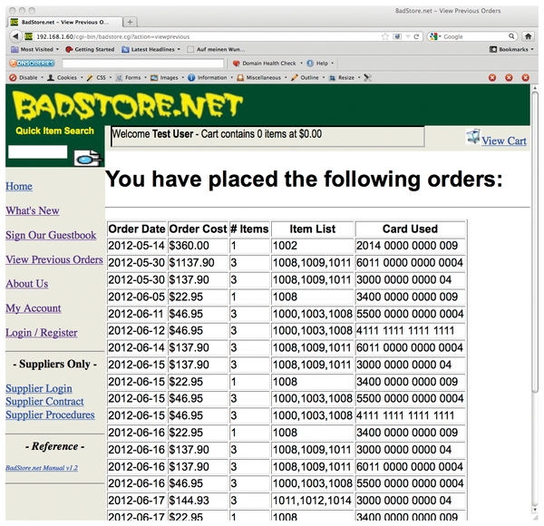 Figure 2: … thus, anyone can see what other customers have ordered. This harmless dry run also works with a frightening number of real shops.