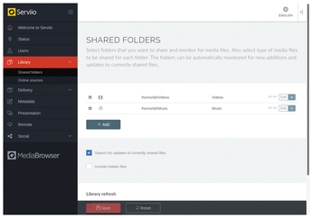 The Serviio software is subject to a proprietary license. You can choose between a free version and a commercial Pro version, which costs a one-off fee of $25. Serviio Pro has some additional functions not available in the free version, such as a web-based media browser and an app for Android devices. Serviio uses free libraries, such as FFmpeg, x264, and the LAME MP3 encoder.