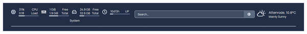 01 - resources: 02 cpu: true 03 memory: true 04 disk: / 05 06 - search: 07 provider: duckduckgo 08 target: _blank