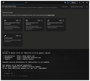 Installing Warp is straightforward. Simply go to the Warp website and download the file for your system. Because I'm working on Ubuntu 24.04 OS, which is a Debian-based Linux, I downloaded the .deb version. Then, using the dpkg command, I installed the package: