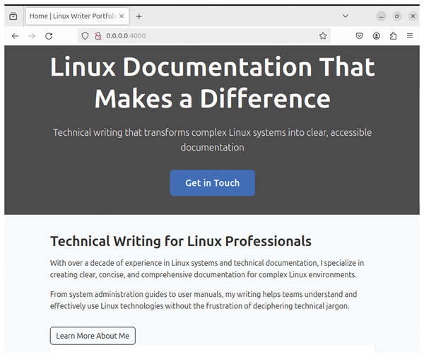 Figure 8 shows the final website generated by Warp AI. You also can access the address, 0.0.0.0:4000, in your web browser. I built this entire website from a single prompt with absolutely no coding knowledge. Warp understands and suggests a ready-to-use command. Even better, it explains what the command does. I no longer need to visit Stack Overflow for quick tasks.