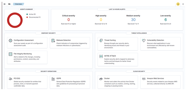Wazuh can detect malware threats, identify vulnerabilities, monitor file integrity, and display information on system inventory. Another important benefit of Wazuh is that it is easy to integrate with other tools.
