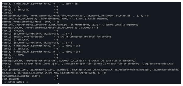 This example is very simple, but in complex applications with many dependencies, strace can reveal exactly which files are missing, even when error messages are vague or nonexistent. Figure 1 shows typical strace output for missing file errors.