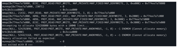 This output clearly shows that the application responded to the mmap() system call with ENOMEM (cannot allocate memory). With this information, I can adjust the application's memory requirements or diagnose why the system doesn't have enough available memory. Figure 2 illustrates how memory allocation failures appear in strace output.