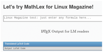 Thirty years ago, math graduate students would pay programmers to render their beautifully drawn mathematical formulas for the computer because the process took twice as long as the original drawing, regardless of the available software. Even today, entering a complex mathematical formula can be much slower than writing the same formula by hand. MathLex [1], a little-known JavaScript utility, helps solve this problem. It parses math input notation into a syntax tree and then renders the notation as several target outputs, which you can then use on your web pages (Figure 1).