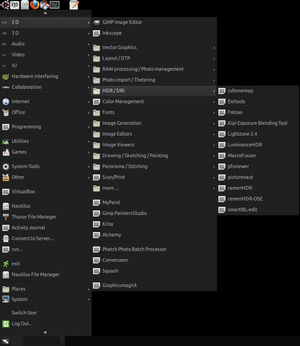 After booting a Live system or installing and booting on a hard drive (see the "Installation" box), the first thing you see is a rather somber theme (Figure 1). The creators of the openArtist distro do this intentionally, because the presence of bright and colorful elements are distracting and can be deceptive to the eye during image processing. It is no accident that Darktable [2] and other RAW converters rely on a similar color scheme.