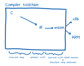 Figure 1 illustrates the relationship between the tools and toolchains involved and shows that WebAssembly not only supports applications in the browser, but locally executes programs, as well.