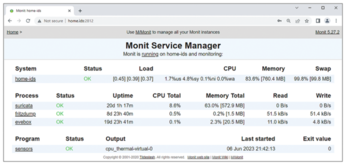 # apt install monit # cat <<EOF >> /etc/monit/monitrc set httpd port 2812 and use address 0.0.0.0 allow admin:monit EOF # systemctl restart monit