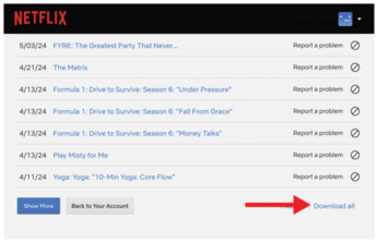 Rather than withholding information, Netflix lets its users peek into their own history. If you select the Profiles menu and then the respective user profile in Viewing Activity, you will find a list (Figure 1) of all the films you have ever watched, including the viewing date and time. The list can even be conveniently downloaded as a CSV file (Figure 2). Each line in the file contains the movie or series title and the screening date in your home cinema (Figure 3).