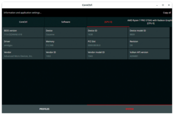 If CoreCtrl finds a supported AMD graphics chip in your system, it will display a window with two tabs at the bottom after launching. By default, you will see a global performance profile in the PROFILES tab, while SYSTEM shows you detailed hardware information for AMD chips. Clicking on one of the hardware components displays tiles with information below the control bar. The active component is highlighted in red in the control bar (Figure 1). The Software tab lists the Linux kernel version as well as the version of the important Mesa graphics library. Version details for OpenGL and Vulkan and the graphics cards' IDs round off the collection of information.