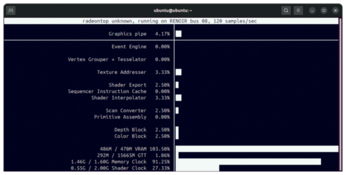 RadeonTop [4] is a terminal program that is suitable for plain vanilla pure monitoring of AMD graphics cards. It supports many old and new AMD Radeon chips. The software can be found in the repositories of most distributions, which means that you can normally conveniently install RadeonTop using the built-in package manager. The project's GitHub page also describes the manual installation procedure for the software.