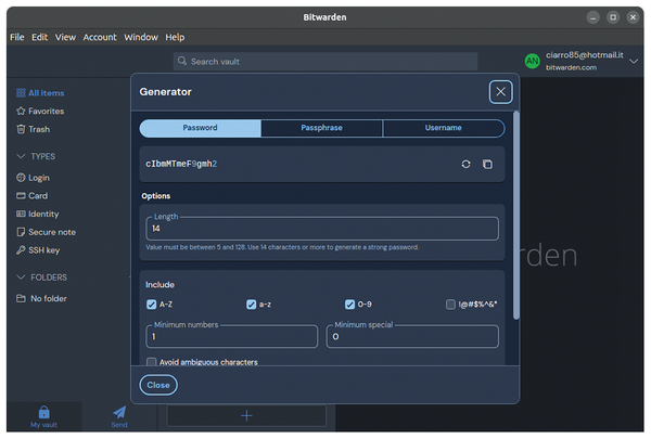 In addition to storing login credentials, Bitwarden can also safeguard various types of sensitive information, including notes, credit card details, and identity-related data. The application also offers a feature to generate strong, secure passwords. To do so, navigate to the password generator from the menu. Customize the settings, such as length and character types, or choose to generate a passphrase. Once it's generated, copy and use the password as needed (Figure 2). In addition, Bitwarden includes the ability to check whether any of your stored credentials have been compromised in known data breaches. Simply select an item from the central pane and click the Check if password has been exposed button.