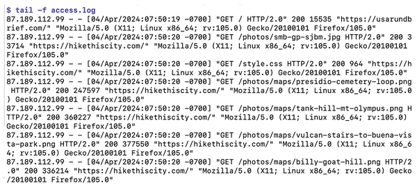 Figure 1: The web server records the IP addresses of incoming requests in the logfile.