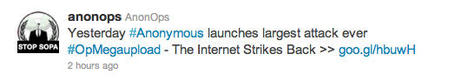 As we put the final touches on this article, operation Megaupload, #OpMegaupload, is in full force (Figure 1).