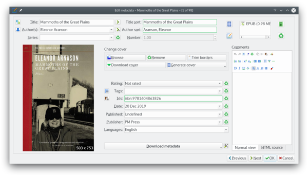 Figure 3: The Edit book window is Calibre’s chief place for both manual editing and editing from the interface.
